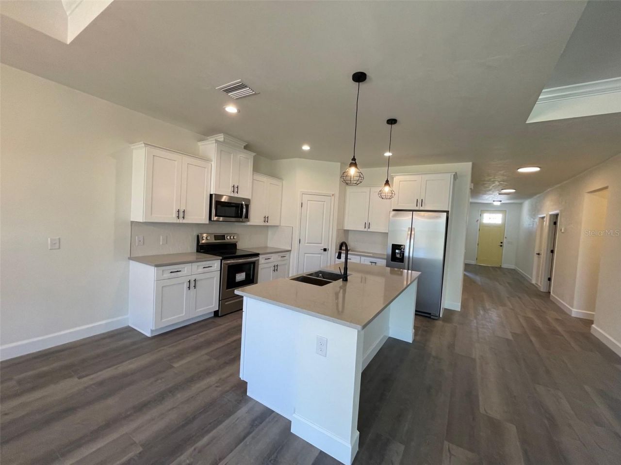 Like-new 4BR/2.5BA home located on a spacious corner lot in the Grand Oaks community off Tower Road. Built by Weseman Builders Inc. and previously leased since completion in July 2024. This 1,907 SF residence features Hardie Board siding with joint covers, board-and-batten accents, decorative stone, and 30-year architectural shingles. Covered front porch and 2-car garage with 8' stamped carriage-style garage doors and decorative hardware. Professionally landscaped yard with low-maintenance zoysia grass.Interior highlights include 9' ceilings, 8' entry doors, crown molding, and tray ceilings in the living room and owner's suite. Carpet-free throughout with luxury vinyl plank flooring in main living areas and bedrooms and ceramic tile in wet areas. Kitchen and baths feature shaker-style soft-close wood cabinets, quartz countertops, and a stainless-steel appliance package. Brushed nickel hardware and lighting fixtures throughout.Grand Oaks amenities include a community pool, covered pavilion, and playground. Conveniently located near Oak Hall School, Markets West, Celebration Pointe, Butler Plaza, UF Health, University of Florida, NFRMC, I-75, Archer Braid Trail, Paynes Prairie, Sweetwater Wetlands, and Downtown Gainesville.