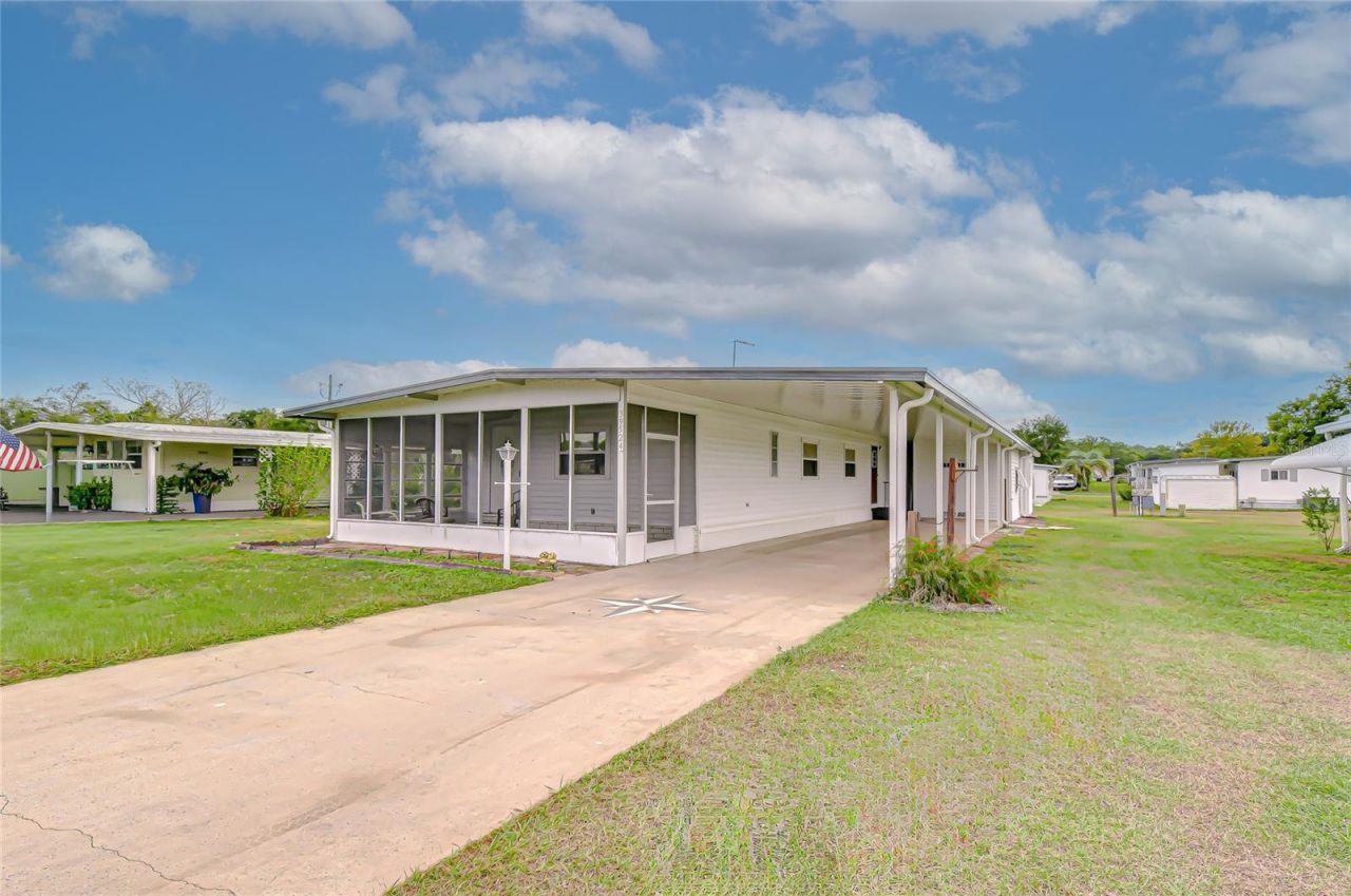 ENJOY THE FLORIDA SUN: in this pretty, well-cared-for 2 bedroom, 2 bath split-plan home located in a highly sought-after 55+ community. A newly replaced 2-car carport (2025) welcomes your home, with utility/storage space at one end, plus a workshop and two additional sheds for hobbies and extra storage. Inside, the home comes fully furnished with everything you need to get started, featuring an inviting eat-in kitchen and a relaxing front screened porch. The community offers a clubhouse, shuffleboard, and regular activities, and is just minutes from grocery stores, eateries, a movie theater, and medical facilities, with larger pets welcome. Best of all, there is NO lot rent, and the low yearly HOA fee includes water-an affordable and appealing opportunity in a desirable location.