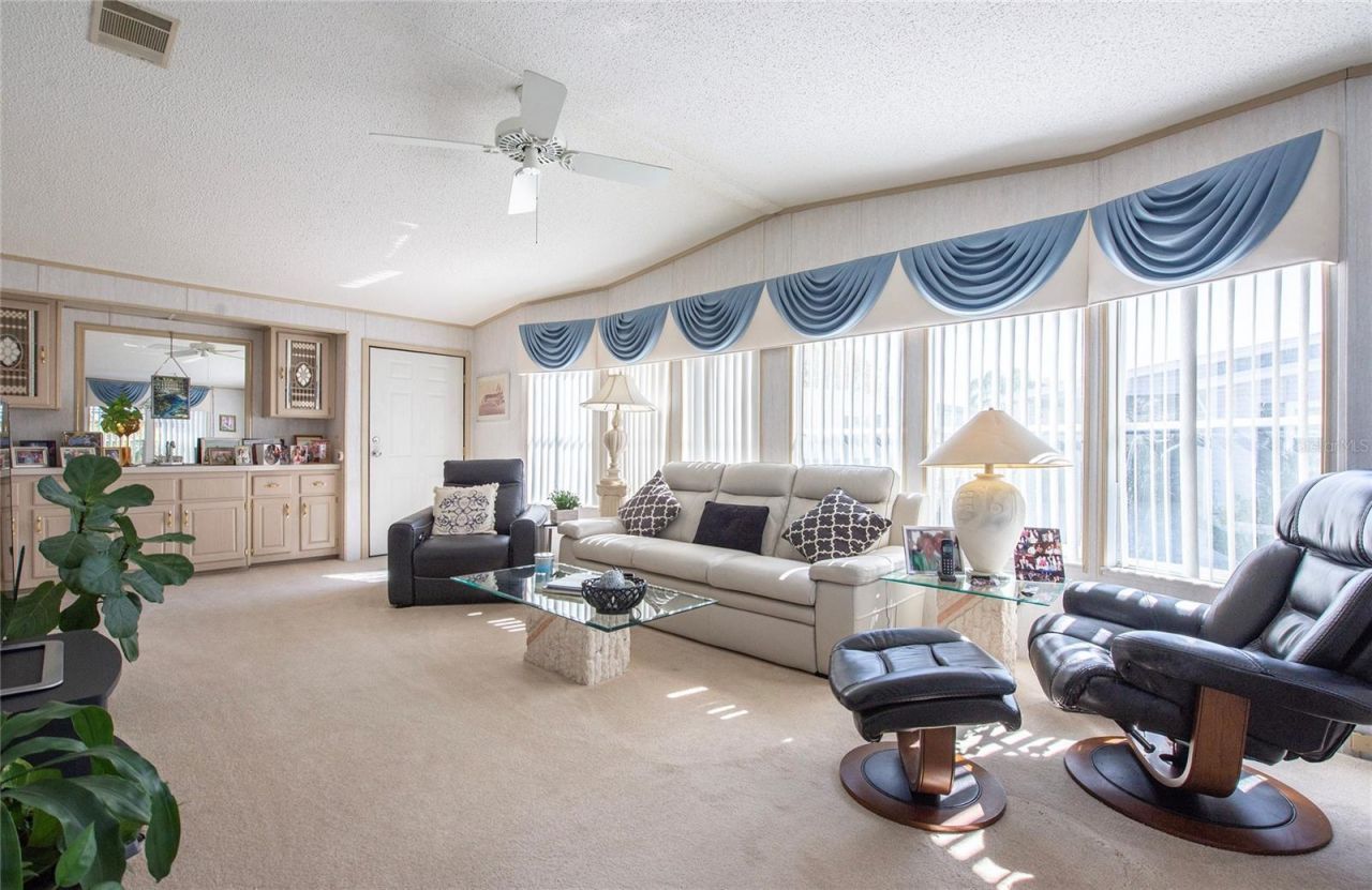 Just listed in the 55+ Gull-Aire Village: This spacious 1993 Jacobsen home offers 1,671 square feet of living space in a quiet setting. Upon entry, you will find a large veranda room featuring a built-in wet bar and custom storage. Abundant windows keep the interior bright, while cathedral ceilings add to the sense of openness. The sizable indoor laundry area includes a built-in counter, making it ideal for hobbies or a home office. There is also an 11x16 screened porch with vinyl windows and a utility room that is perfect for storing bikes or other items. AMS roof-over and skylights installed in 2/ 2012. 4 Ton Goodman heat-pump installed 7 years ago. New Vapor Barrier installed 5/2015. Gull Aire Village provides excellent amenities such as a lively clubhouse, library, pool table, shuffleboard courts, a bocce ball court, and a large, heated pool and spa. Residents can participate in a full calendar of planned activities and enjoy getting around this golf cart-friendly neighborhood. The HOA fee is just $70 per month, offering excellent value. Pet owners are welcome-one pet of any size is allowed, and with an Emotional Support letter from your physician, a second pet is permitted. Best of all, you own the land. Conveniently located, this home is directly across the street from popular spots like AMC Theatres, Beall's, Marshall's, Pet Smart, Dollar Store, Ulta, and numerous restaurants including Craft Street Kitchen, Country Pizza Italian Grill, Shaker and Peel, Chipotle, Mandolas, and Eve's Family Restaurant. Essential services such as Super Walmart, Publix, and Countryside Hospital are only 15 minutes away, while the beautiful Honeymoon Island and Caladesi State Parks are just around ten miles from your door. Room measurements are approximate; buyers should verify all details.